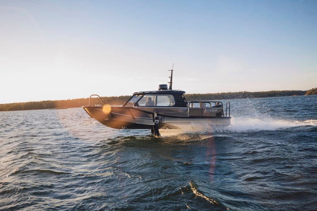 Arrofoililla voit liukua aaltojen yläpuolella 25 solmun nopeudella ja käyttää polttoainetta vain noin 0,5 litraa merimailia kohden!