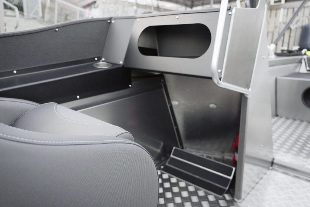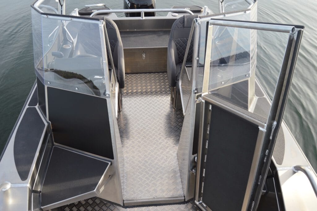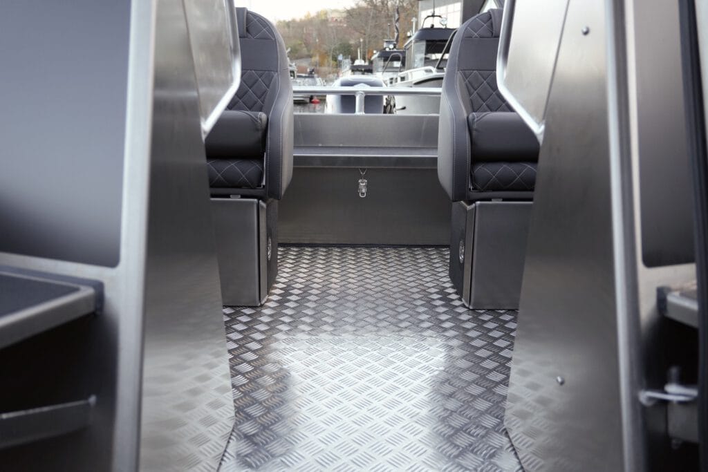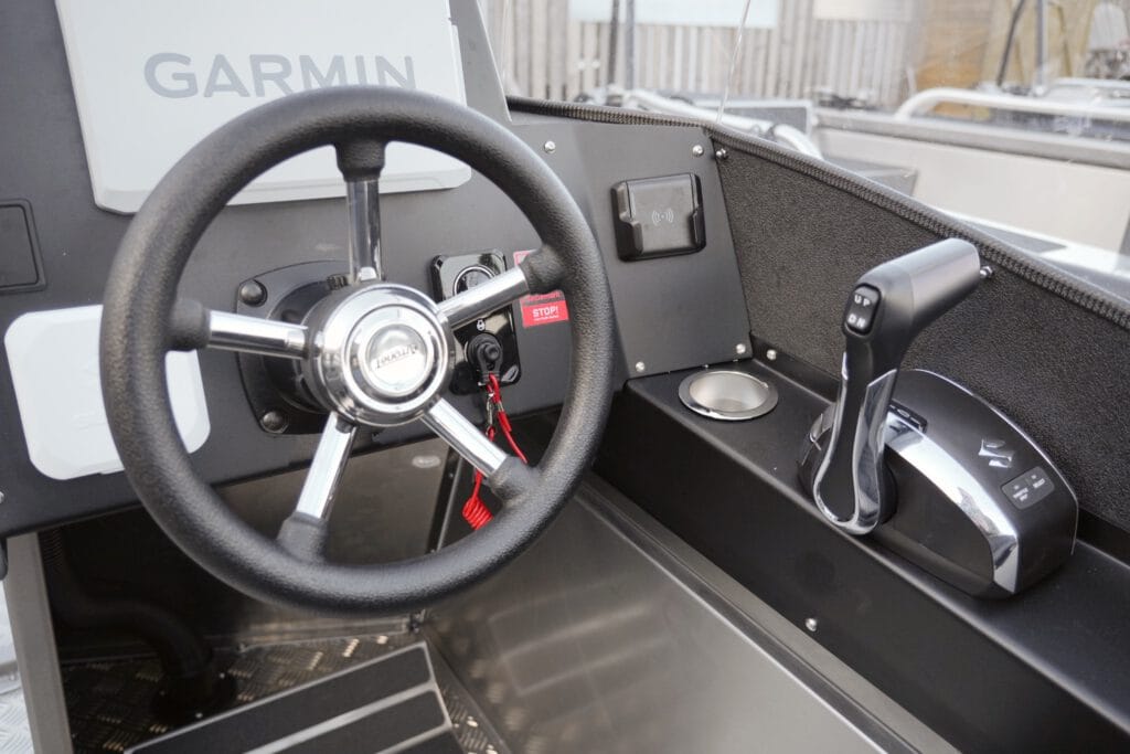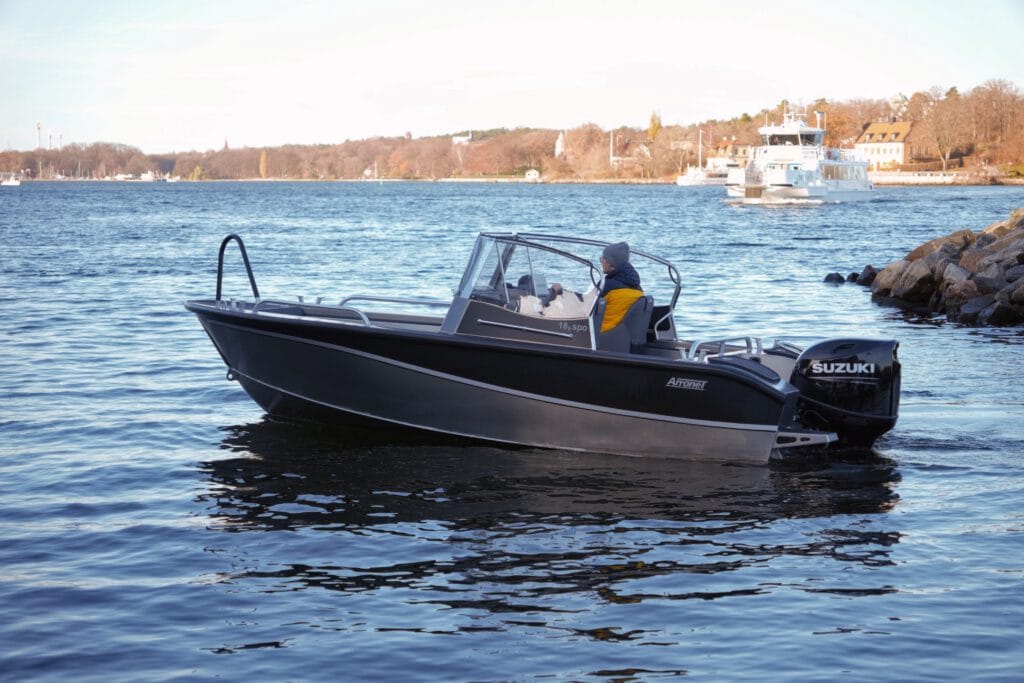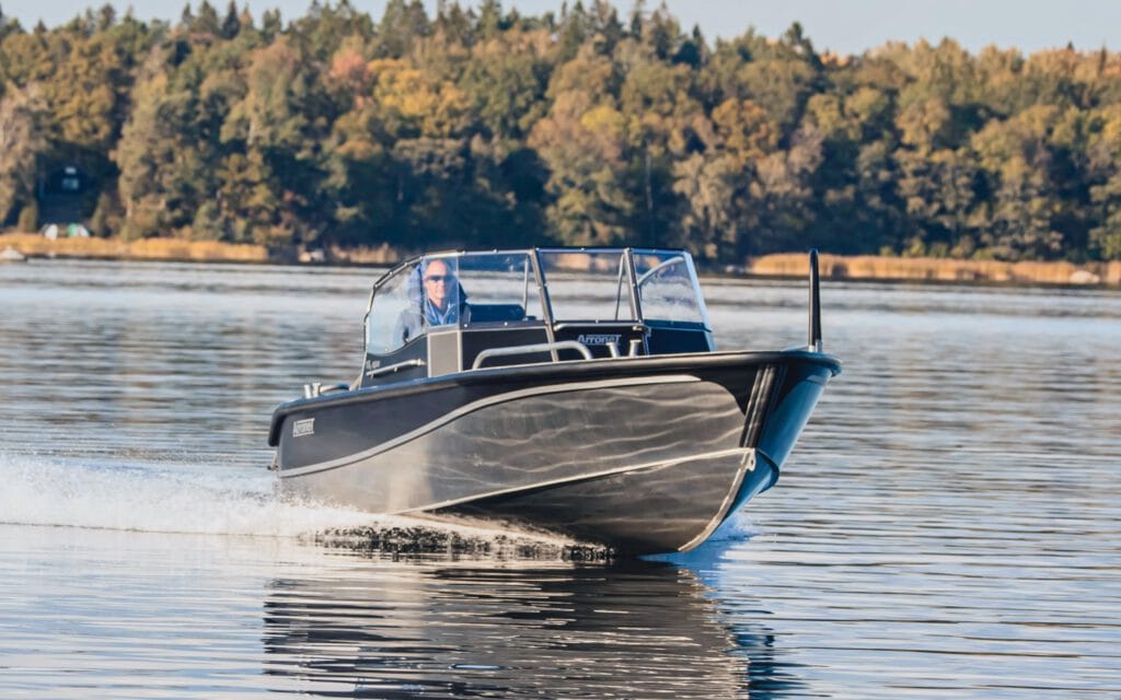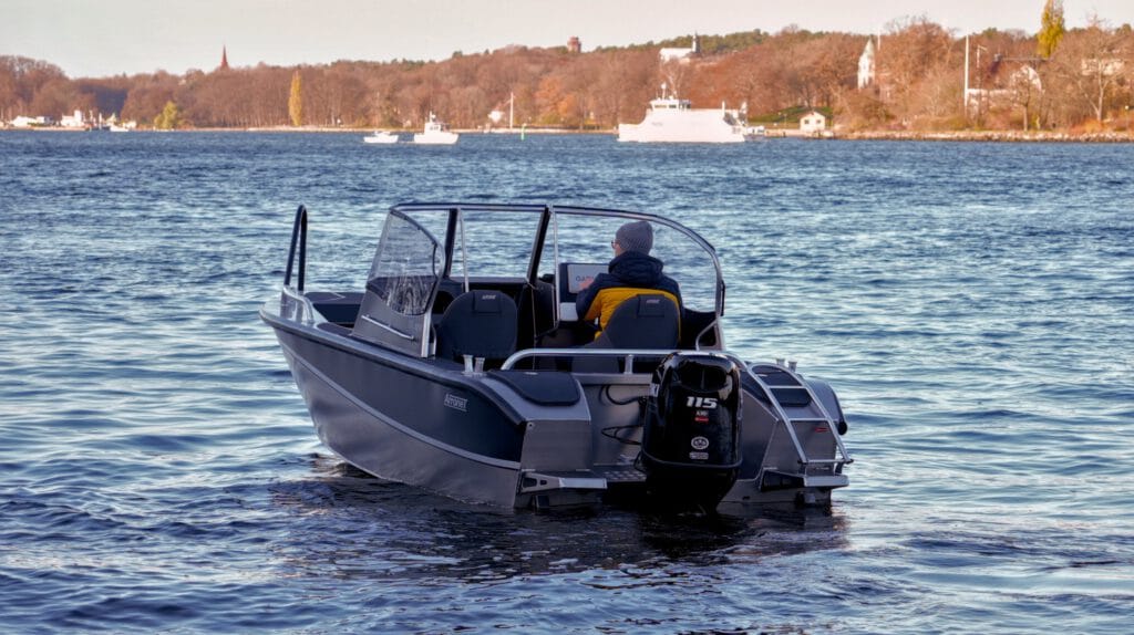 Man sitter skyddad bakom vindrutan och färdas bekvämt tack vare båtens smidiga gång.