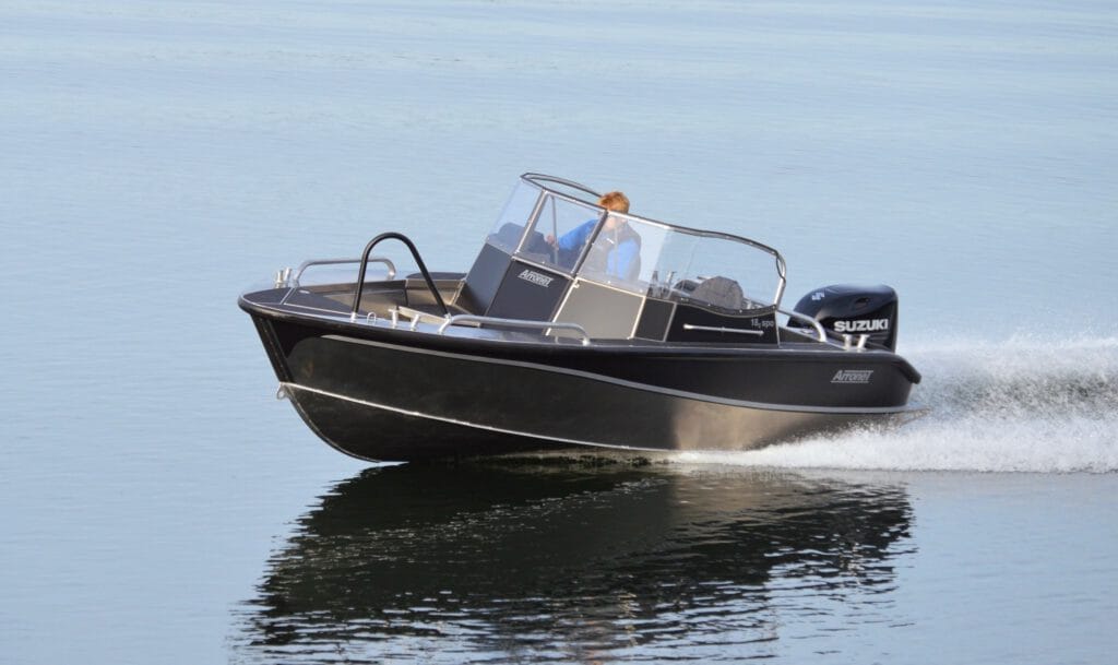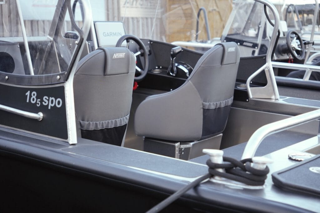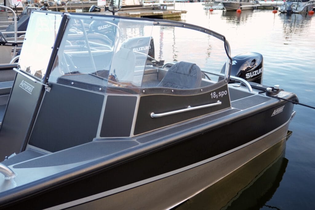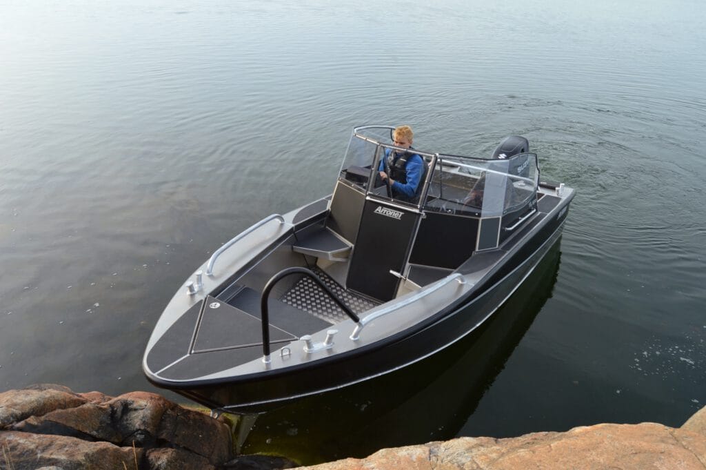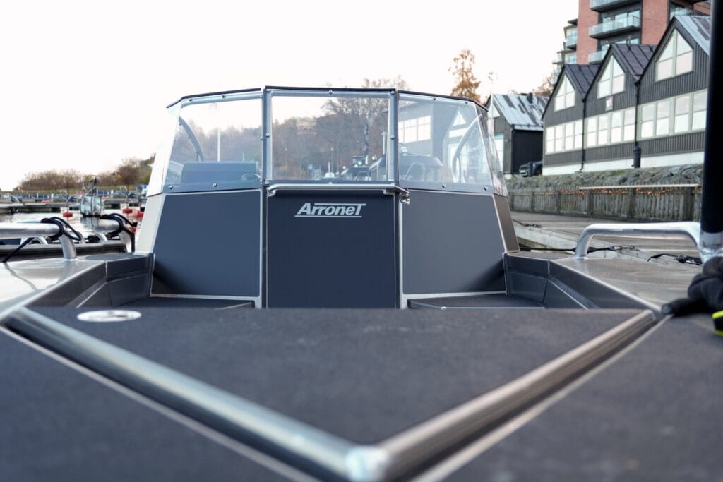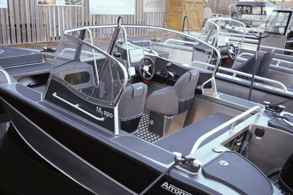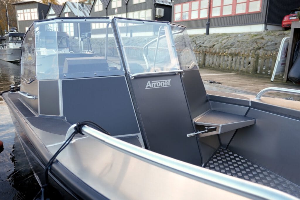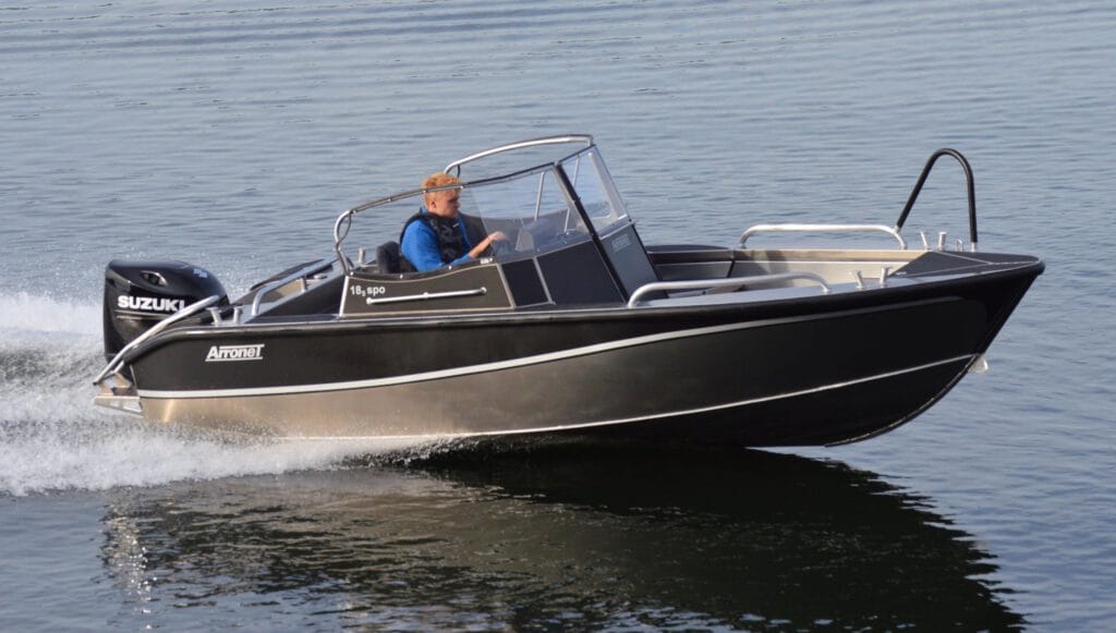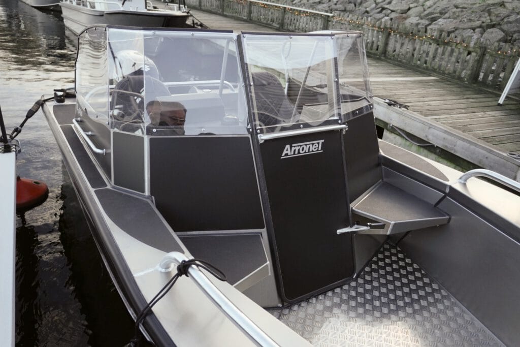 Arronet 18 5 SPO är en populär båt med dubbla pulpeter och en dörr mellan pulpeterna som standard.